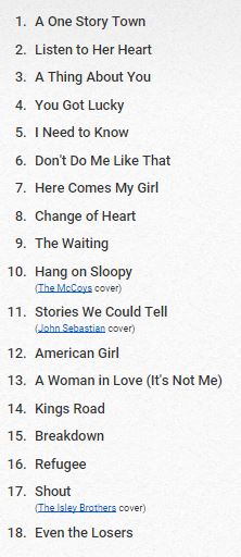 I also liked Long After Dark, the more-of-the-same follow-up to Hard Promises, whose You Got Lucky was nevertheless an MTV hit. I got tickets to see Petty at the Universal Amphitheater on that tour in 1983. When we arrived at the venue, there was a mobile sound desk where our seats were supposed to be. The next thing we knew, we were being ushered toward the orchestra and into the second row, from which vantage we enjoyed the set list on the left. I’ve seen him a bunch of times since – at the Forum on the Southern Accents tour, for example, and at the Pacific Amphitheater with Bob Dylan – but that first show has been hard to top (see setlist).