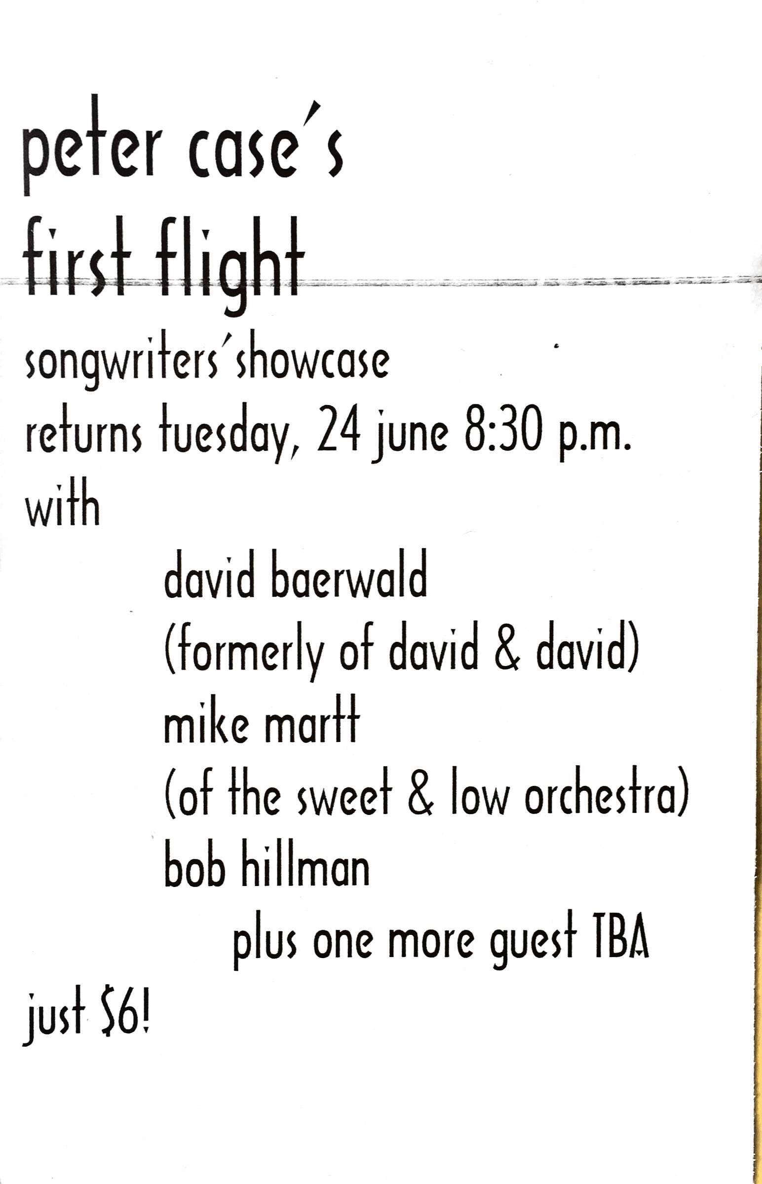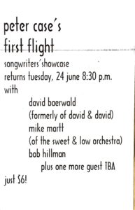 Only one of my first batch of songs – Saint Anne – made into onto my first album, Playing God (1999). I didn’t even play any of them on Peter Case’s First Flight, because I’d written a bunch of new ones I liked better. Still, those songs and performances represented an exciting and important first step; at least, they suggested to a few people that I had potential.